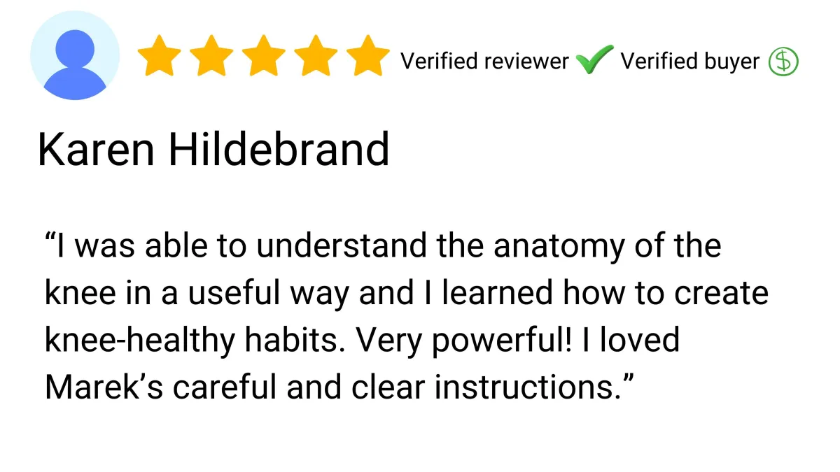 After you complete all 33 lessons, you’ll unlock a special 90-minute Post-Course Surprise Session designed to deepen your results and solidify the changes you’ve created. This extended session gives you additional strategies, fine-tuned guidance, and an opportunity to integrate everything you’ve learned—so your gains don’t just last, they continue to grow. It’s our way of giving you one more powerful boost on your journey to stronger, happier knees.
